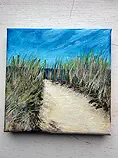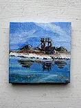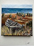 akrylfärg/akvarellfärger på duk och papper. Helena jobbar